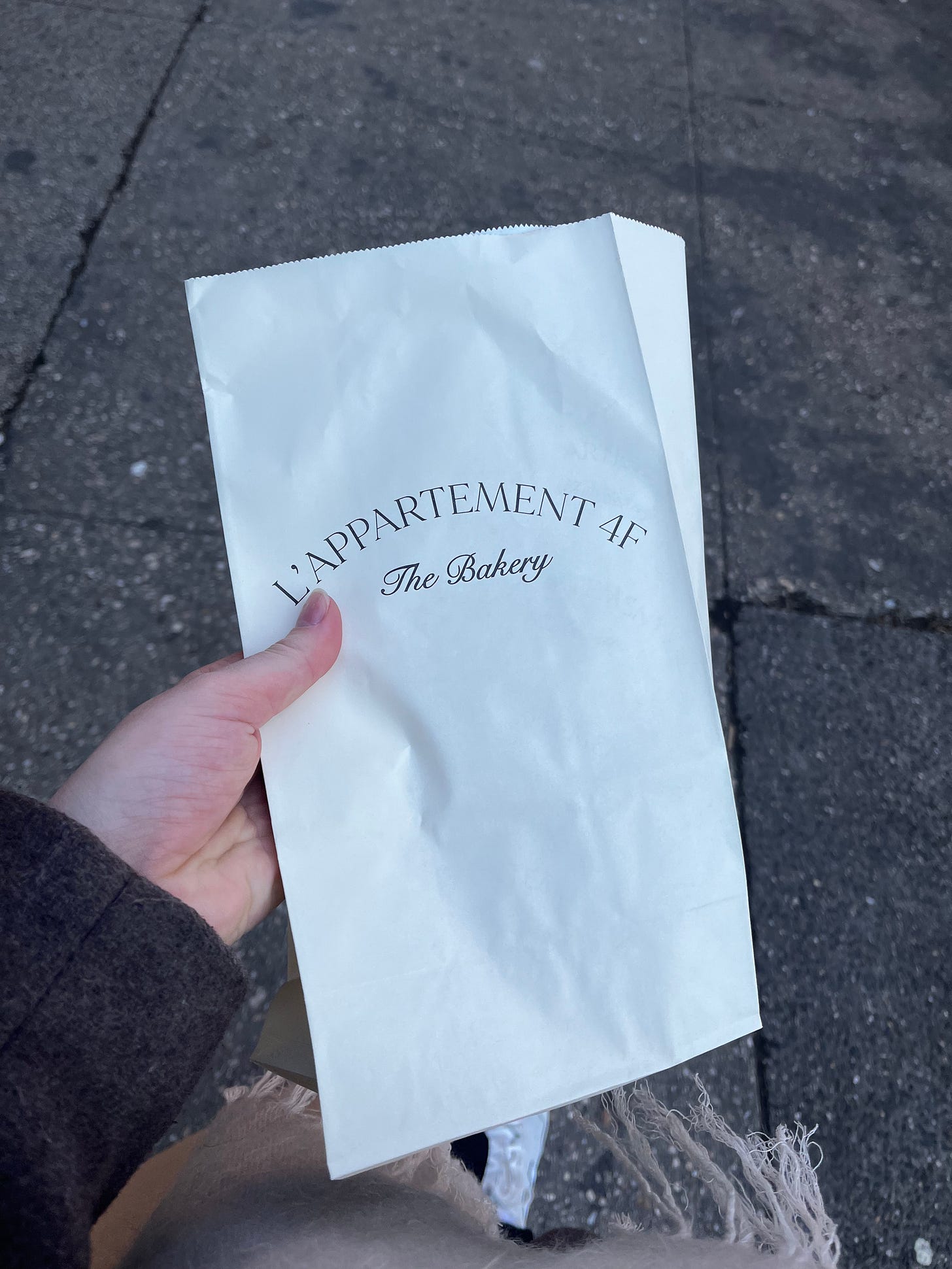 I didn’t really mean to, but I ended up going to L'Appartement 4F’s West Village location on their very first day there, dutifully stepping into a long line in the cold sun. I was starving and ended up ordering a jambon-beurre sandwich that was just a little tough–honestly, it was my fault for going to a bakery known for flaky croissants and buttery pastries on an empty stomach. But the sandwich came in what I think was the most delicately designed bag, and immediately after throwing it away I felt like I should have kept it and framed it to put in my kitchen. Next time!